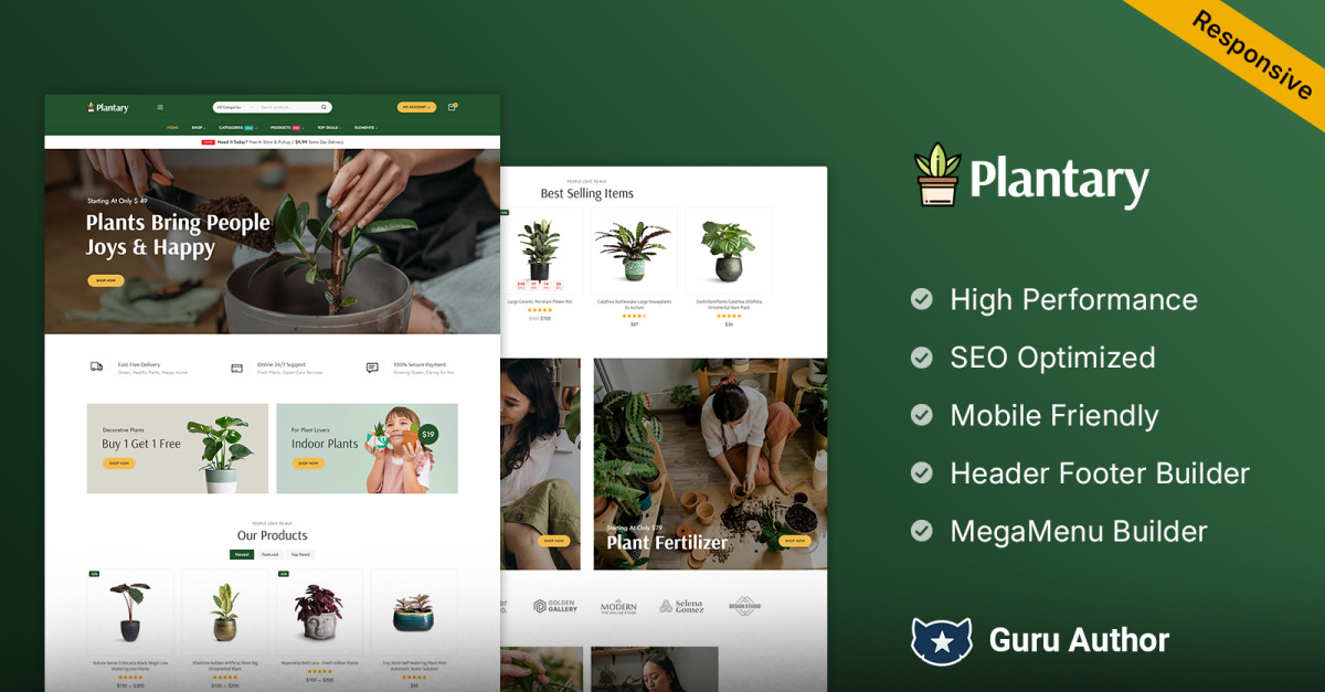 Realizzato con Elementor Page Builder , Plantary consente una personalizzazione completa senza alcuna conoscenza di programmazione. Trascina e rilascia elementi, modifica i layout e personalizza colori e font per adattarli all'identità del tuo brand. L'importazione demo con un clic ti consente di lanciare un negozio completamente funzionante in pochi minuti.