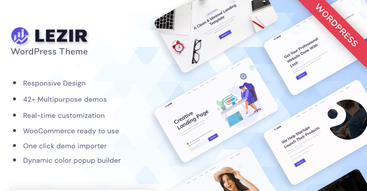 Lezir è un tema di landing page reattivo creato con WordPress ed Elementor. Lezir è un tema WordPress completamente reattivo e pronto per la retina adatto a tutti i tipi di tecnologia, business, Saas, app, studio e fintech e altri tipi di siti Web. È un tema molto facilmente personalizzabile, pulito e chiaro. Ha un design minimalista e unico che porterà ai tuoi utenti un senso di idealismo e creatività. Uno dei migliori temi per la tua landing page.