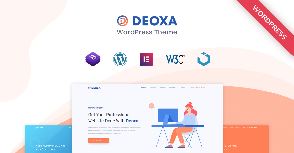 Deoxa è un modello di pagina di destinazione Bootstrap creato con WordPress ed Elementor. Deoxa è un tema WordPress basato su Elementor, adatto a qualsiasi tipo di agenzia, portfolio, studio di design, agenzia digitale, creativa, aziendale e molto altro. Questo è un tema perfetto per la tua attività per impressionare i tuoi clienti. Ha un aspetto professionale e un design completamente reattivo su tutti i dispositivi. Puoi installare rapidamente utilizzando un importatore demo con un clic.