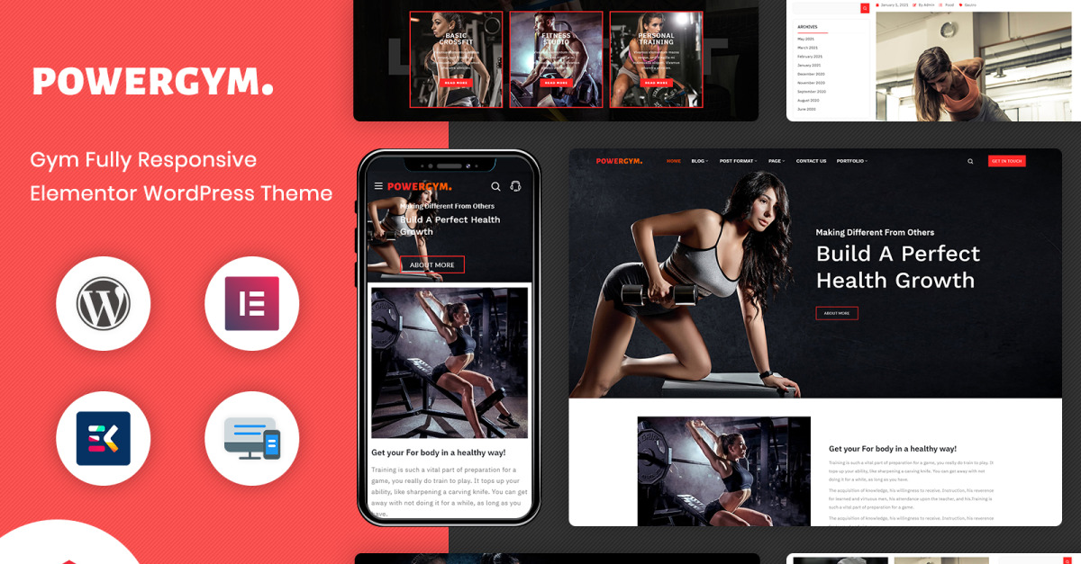 Correttamente reattivo sia per Windows che per telefono e retina ready, PowerGym viene fornito con vari layout di home page, supporto 24 ore su 24, 7 giorni su 7 e opzioni di colore illimitate. È estremamente intuitivo, con il generatore di pagine Drag and drop - Elementor incluso nei plug-in in bundle del tema. Sono incluse anche le diverse barre laterali con variazioni, che ti consentono di visualizzare le immagini in modo piacevole in una varietà di modi sorprendenti.