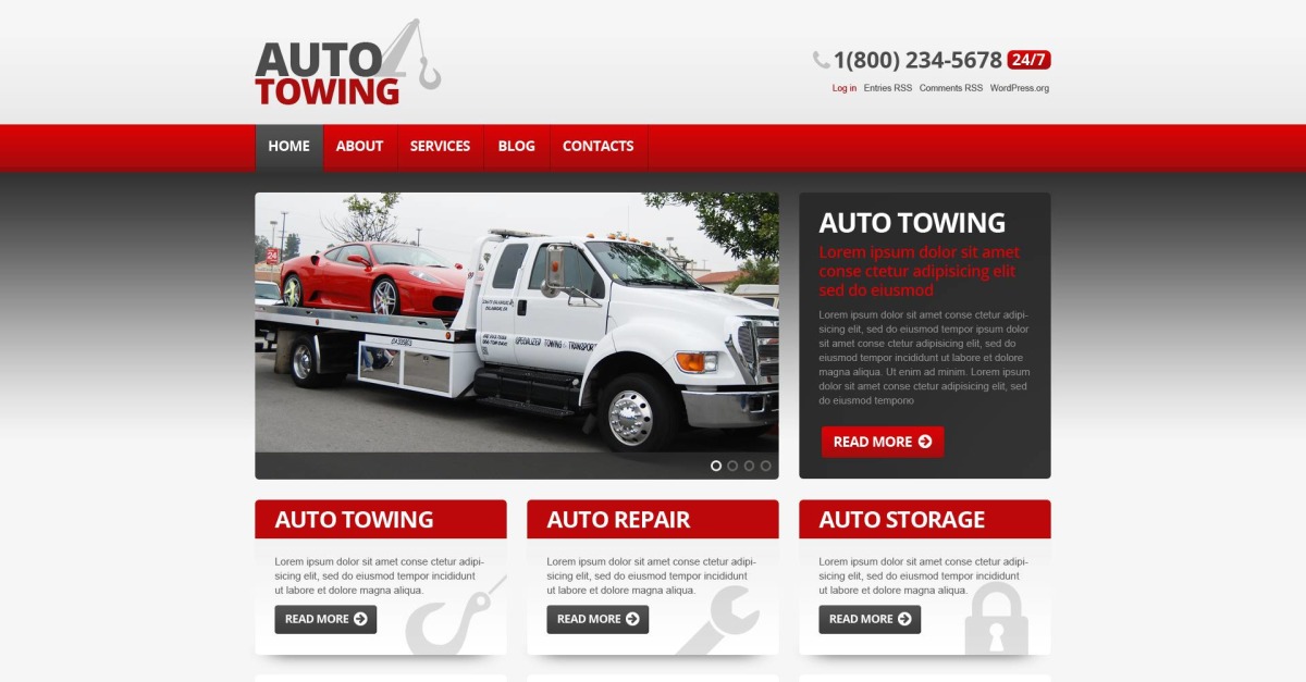 Tema WordPress gratuito per la riparazione dell'auto con rimorchio automatico
