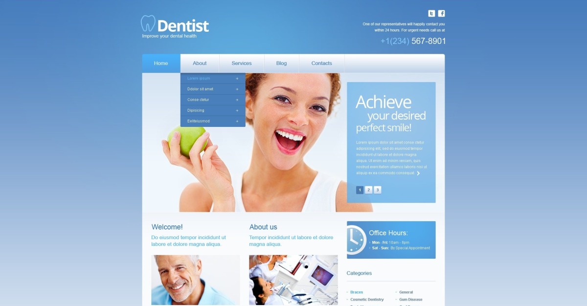 Scarica questo tema WordPress gratuito per odontoiatria e modello di sito Web in un clic. Grazie al suo design specifico di nicchia, sarà perfetto per siti web di stomatologia, dentista, dottore, clinica. ⏩ WordPress 3.0 e versioni successive ⏩ più pagine ⏩ immagini di esempio e contenuti.