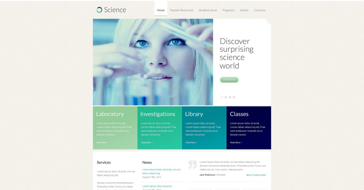 Scarica questo tema WordPress gratuito per la scienza con un clic. Grazie al suo design specifico di nicchia, sarà perfetto per i siti Web di farmacologia, scienza e test di laboratorio. ⏩ WordPress 3.0 e versioni successive ⏩ più pagine ⏩ immagini di esempio e contenuti.