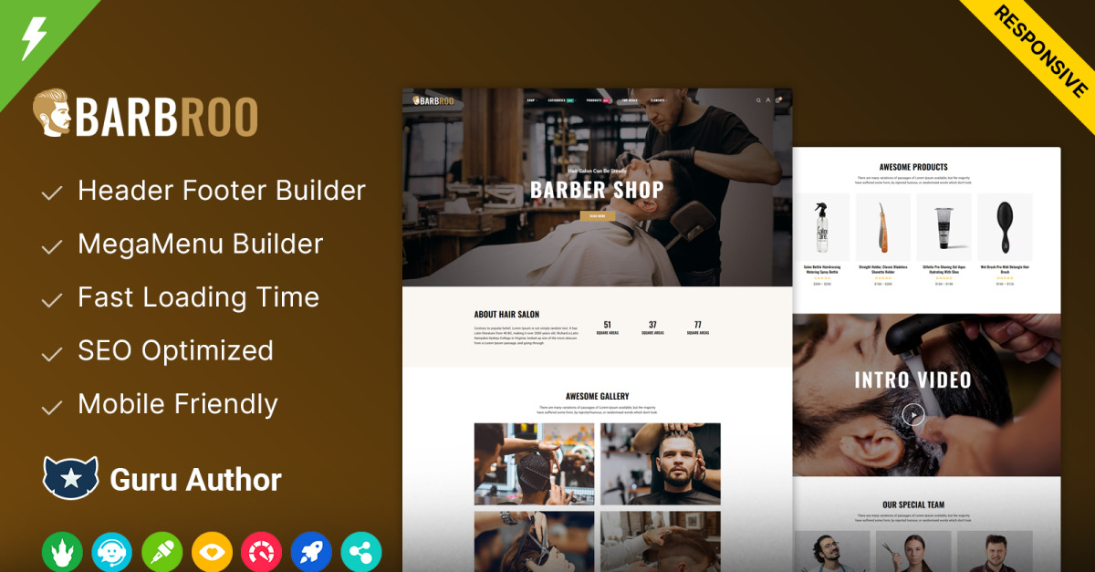 Inoltre, il tema è completamente responsive e retina-ready, garantendo un aspetto impeccabile del tuo sito web su tutti i dispositivi e le dimensioni dello schermo. Barbroo integra anche una gamma di funzionalità avanzate, tra cui l'integrazione con i social media, l'ottimizzazione per i motori di ricerca e la compatibilità con i plugin più diffusi.