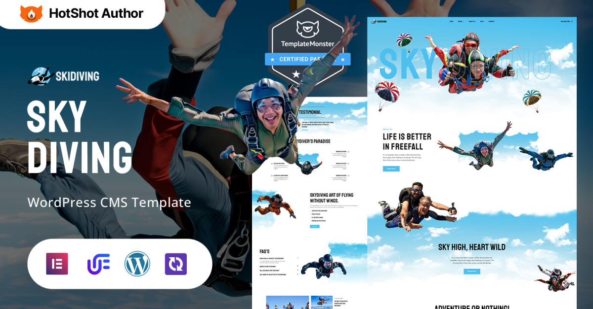 Skidiving - Avventura di paracadutismo e tema WordPress Elementor per paracadute