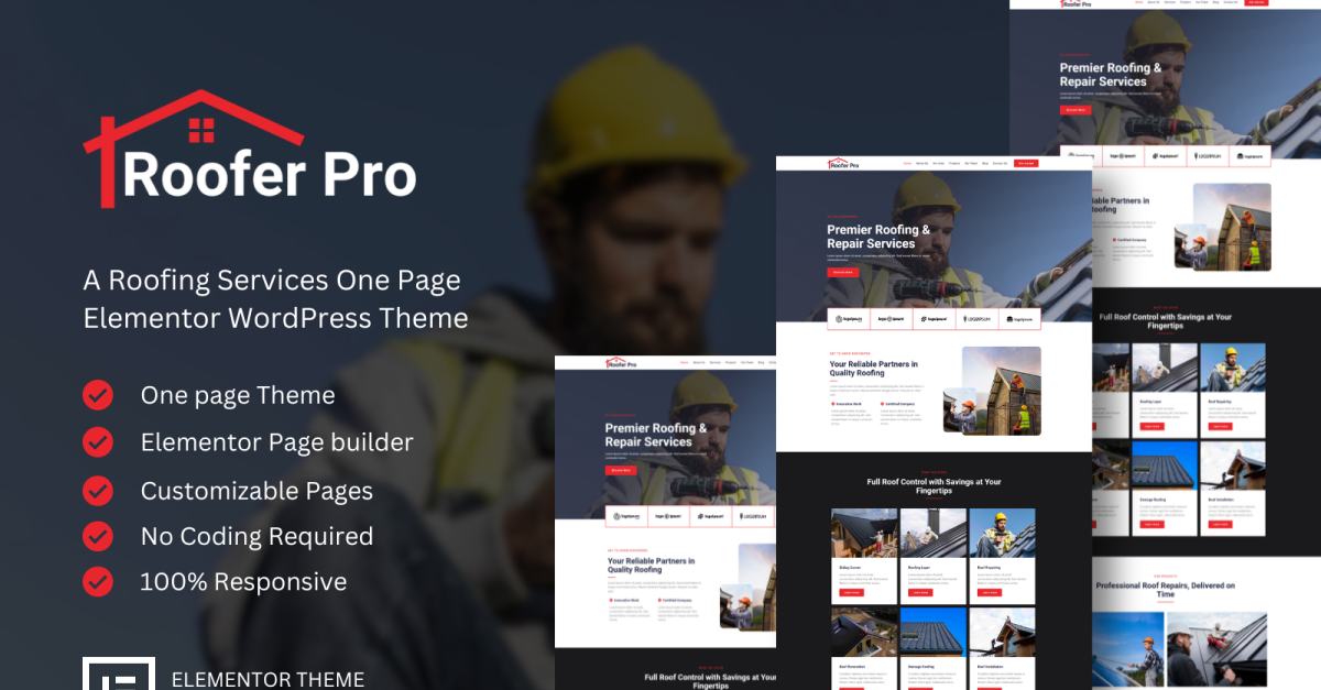 Roofer Pro - Tema WordPress Elementor per servizi di copertura