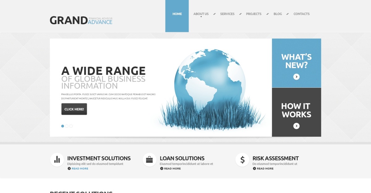 Questo è il design WordPress di una società finanziaria con Portfolio