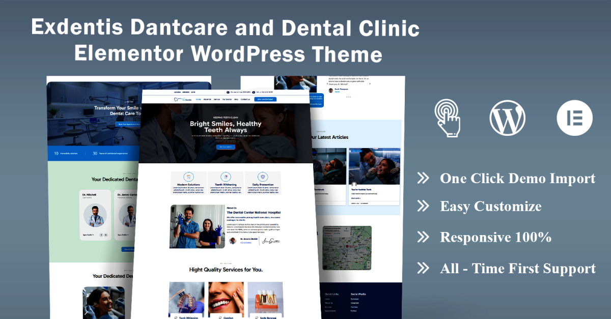 Exdentis Dantcare and Dental Clinic Elementor WordPress Theme è un modello web moderno, elegante e ricco di funzionalità per dentisti il cui unico scopo è acquisire più pazienti. È ottimizzato per i dispositivi mobili. Questo tema è realizzato con il page builder Elementor di facile utilizzo che fornisce una funzione drag-and-drop fluida per chiunque, che sia uno sviluppatore professionista o un principiante. Il sito è progettato per essere pulito e professionale e promuovere un'esperienza utente migliorata che mostra la gamma di servizi, i membri del team e la tecnologia delle cliniche in un modo visivamente accattivante e allo stesso tempo funzionale.