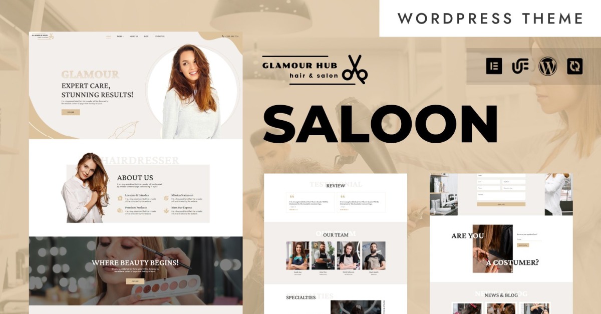 Glamour Hub - Tema WordPress Elementor per barbiere e salone di parrucchiere moderno