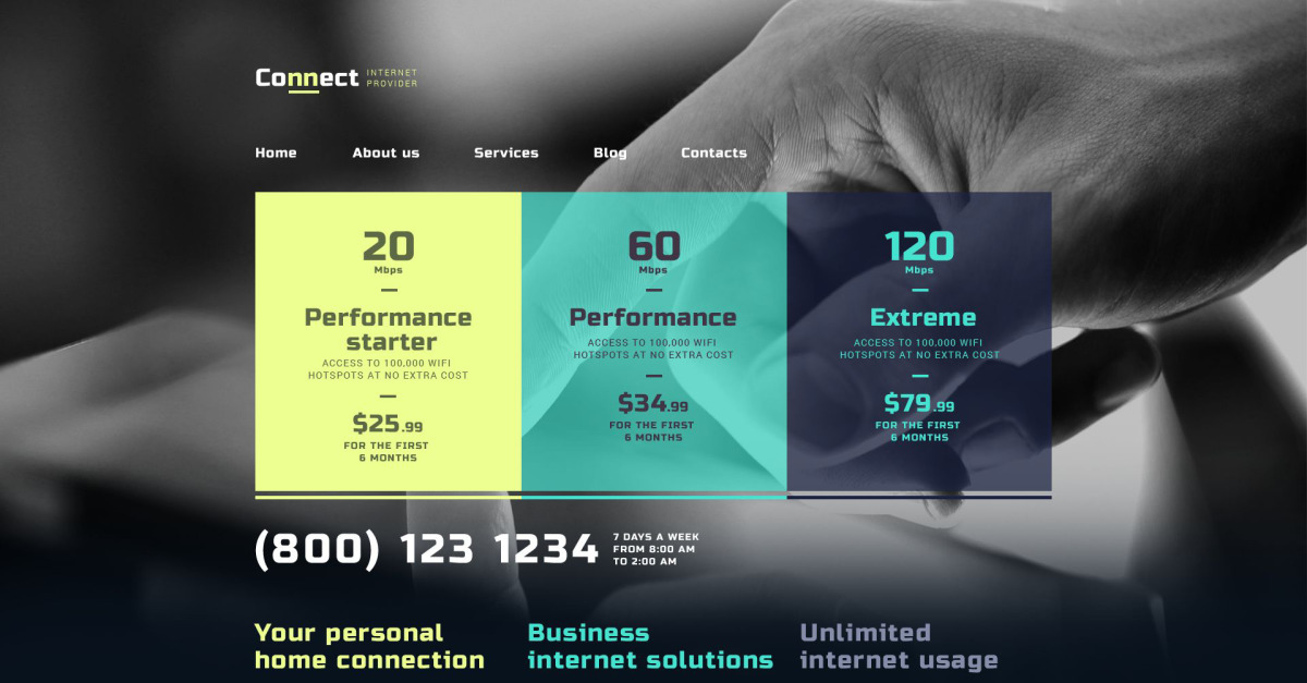 Questo è il modello WordPress del provider di accesso a Internet con Cherry Framework