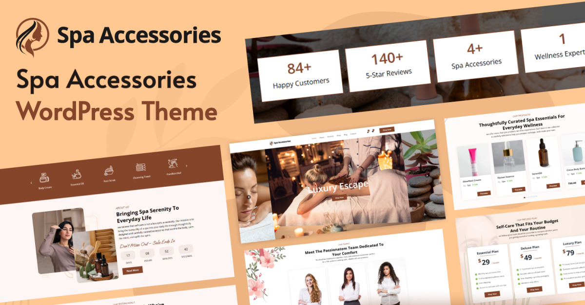 Il tema WordPress Spa Accessories è stato creato appositamente per le aziende che vendono articoli per spa e benessere. È elegante, contemporaneo e completamente responsive. Che tu gestisca un negozio online che vende prodotti di lusso per la cura della pelle, attrezzature per massaggi, articoli da bagno o oli per aromaterapia, questo tema offre un aspetto semplice e rilassante che cattura perfettamente l'essenza rilassante della tua attività.
