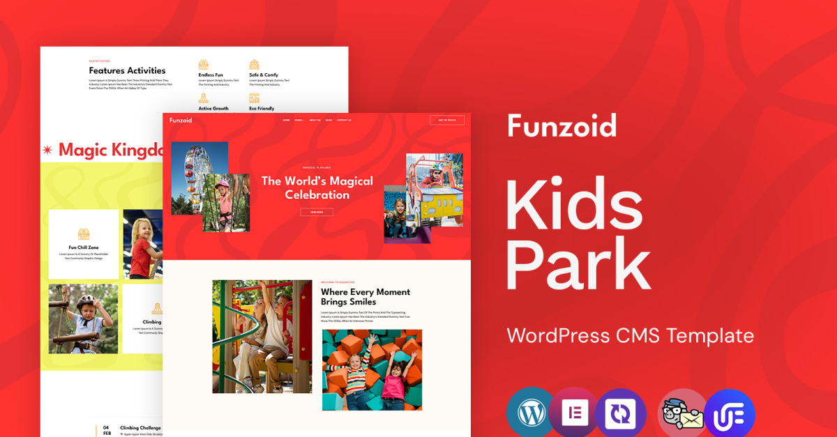 Funzoid è un tema WordPress vivace e giocoso, appositamente creato per parchi giochi, aree gioco al coperto, aree di divertimento e club ricreativi. Ricco di colori, animazioni e immaginazione, questo tema offre un'esperienza digitale gioiosa che rispecchia l'entusiasmo di un'area di divertimento reale.
