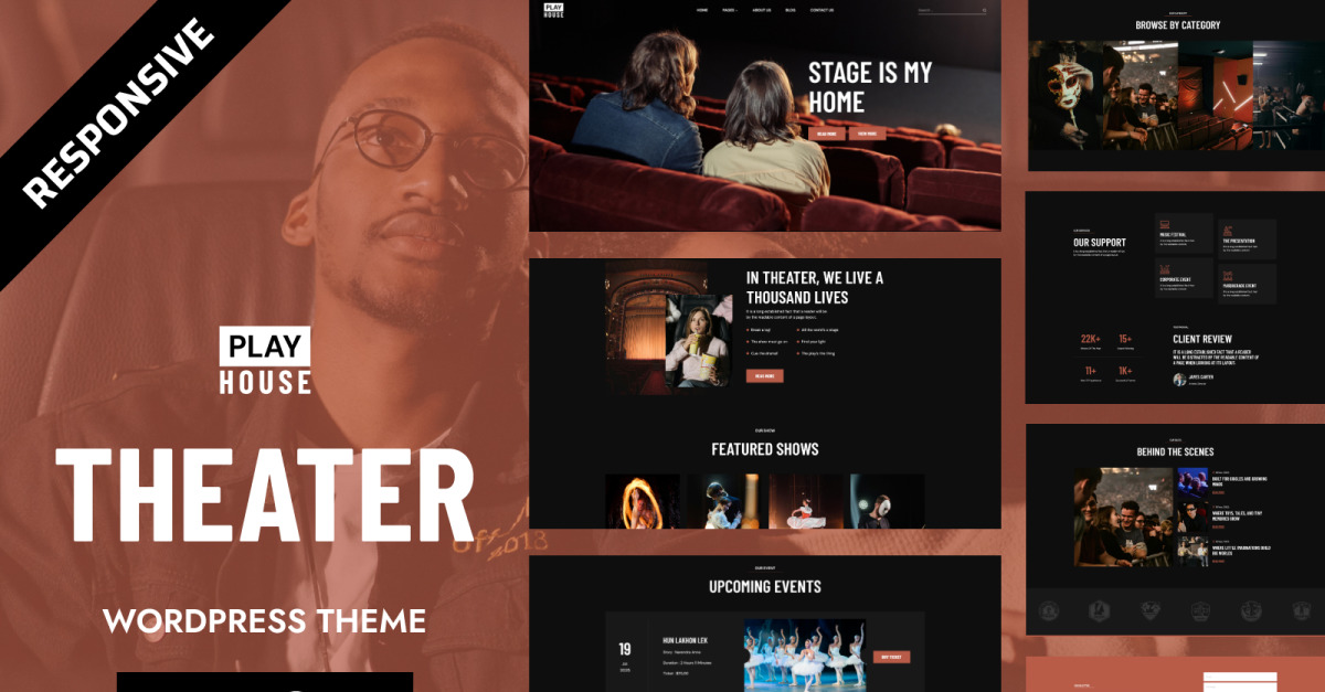 Immergi il tuo pubblico in un mondo di creatività, dramma e performance con il nostro splendido modello WordPress per teatro Play House, progettato esclusivamente per gruppi teatrali, circoli teatrali, accademie di arti performative, studi di recitazione, cinema e società di organizzazione di eventi.