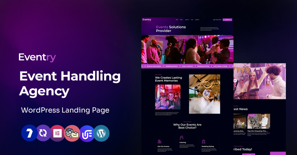 Eventry è un tema WordPress potente ed elegante, creato appositamente per aziende di organizzazione eventi, organizzatori di conferenze, wedding planner, fiere, concerti ed eventi aziendali. Progettato pensando a flessibilità e impatto visivo, Eventry ti aiuta a presentare eventi, calendari, relatori, gallerie e prenotazioni con eleganza e precisione.