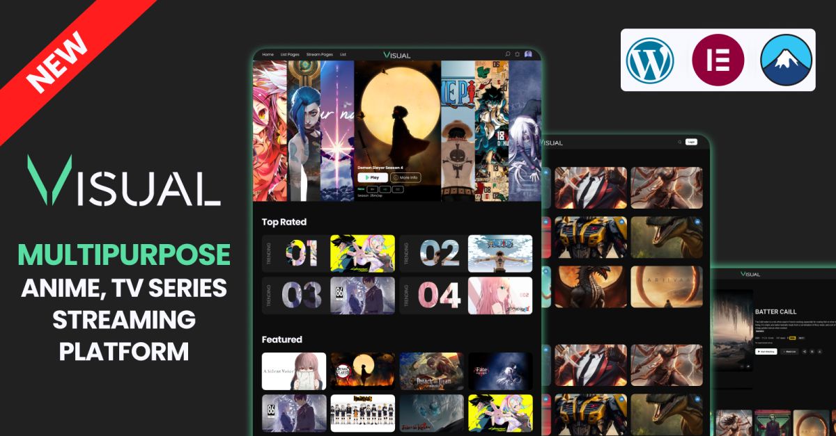 Visual – Anime & Movie Streaming Elementor WordPress Theme è un tema WordPress moderno, potente e completamente responsive, progettato per siti web di streaming di anime, piattaforme cinematografiche, portali di programmi TV e reti di contenuti video. Sviluppato con Elementor, Visual ti consente di creare un sito web di streaming ricco di funzionalità senza dover scrivere codice, offrendo al contempo un'esperienza utente premium al tuo pubblico.