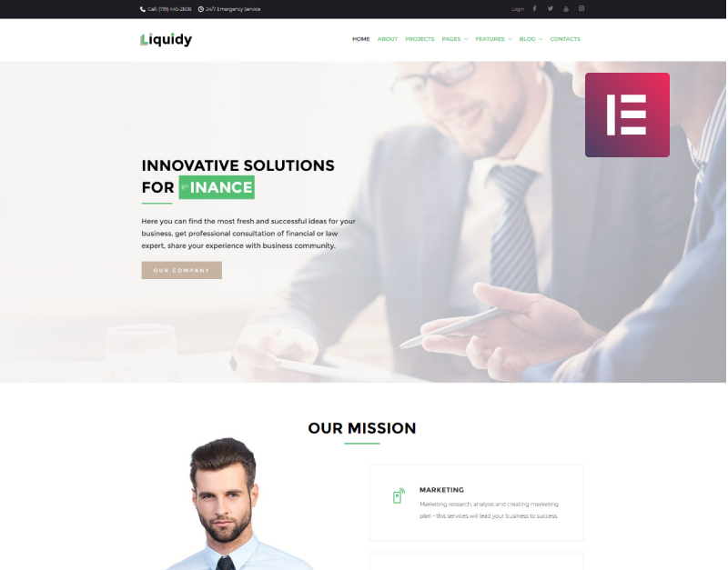 Liquidy - Tema Elementor WordPress per società di investimento