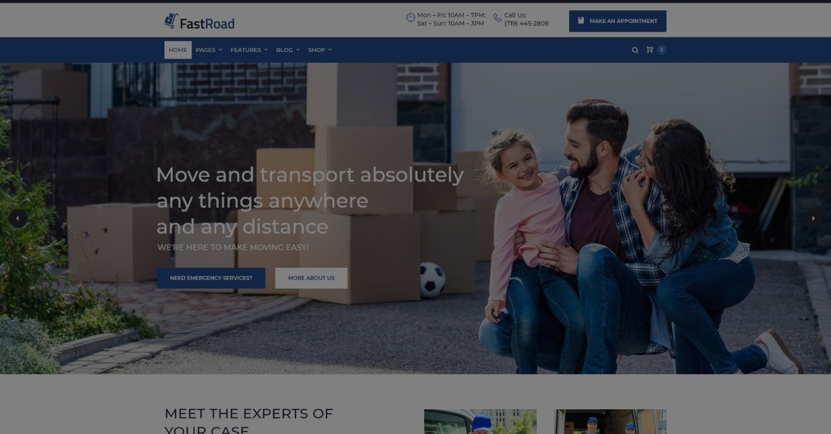 Se sei interessato a creare un fantastico sito Web per la tua azienda di traslochi, il nostro modello è la soluzione più pratica per te. FastRoad è il tema costruito sulla base di Elementor e contiene una grande quantità di plug-in, contribuendo a creare un sito altamente funzionale e ad aggiungere contenuti accattivanti. Con il tema FastRoad potrai creare il tuo negozio online grazie al pacchetto WooCommerce. Sarebbe più che facile operare con Elementor e migliorarlo con il potente plug-in JetElements. Inoltre, puoi visualizzare facilmente le testimonianze dei tuoi clienti, presentare il tuo personale e mostrare le foto con i plug-in di cui è dotato il tema. Ti presentiamo un design altamente personalizzabile e reattivo. Il tuo sito web sarà disponibile in tutto il mondo e su tutti i dispositivi conosciuti. Con la pagina Contatti i tuoi clienti sapranno sempre come comunicare con te e acquisire i tuoi servizi. Diffondi la tua impresa di traslochi con il tema FastRoad!