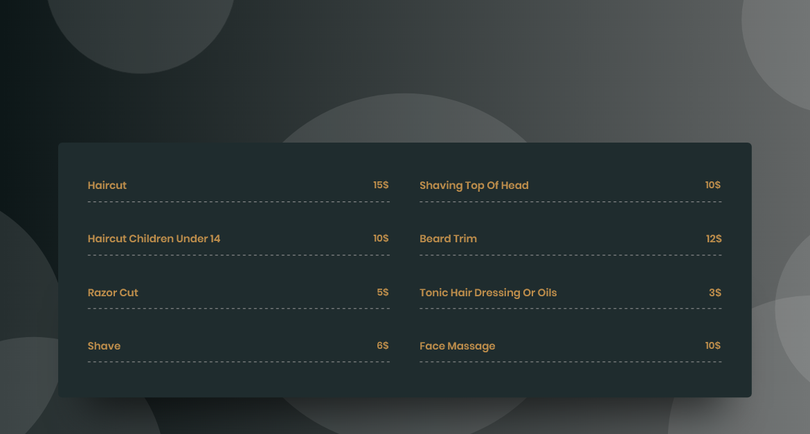 Tabella dei prezzi del barbiere Pagina di destinazione dell'intestazione dell'eroe Adobe XD Template Vol 069