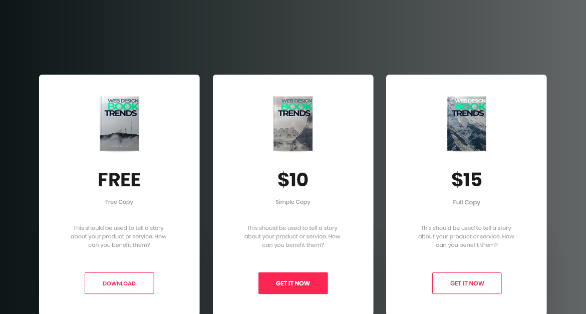 Tabella dei prezzi degli ebook Pagina di destinazione dell'intestazione dell'eroe Adobe XD Template Vol 074
