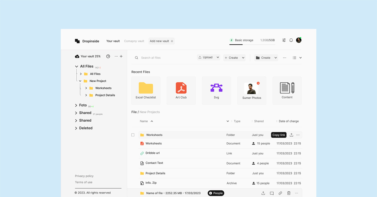 Progettazione dell'interfaccia utente del dashboard di gestione dell'archiviazione