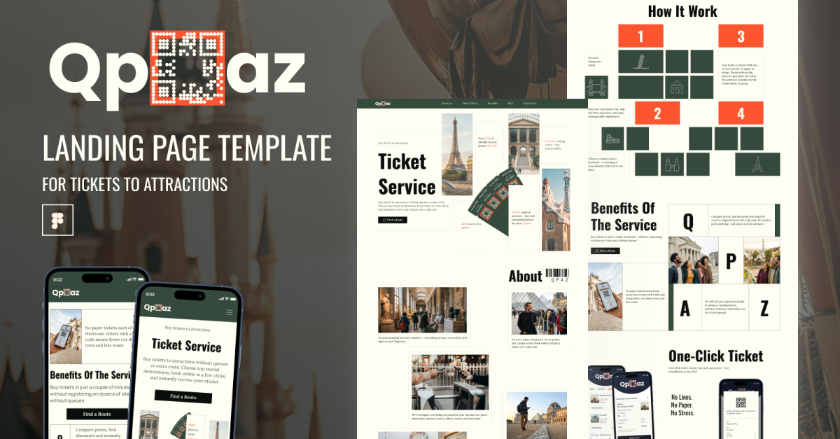 QPAZ – Modello di interfaccia utente per landing page per la prenotazione di biglietti d'ingresso ad attrazioni in tutto il mondo
