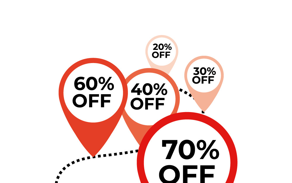 La puntina rossa indica gli sconti sulla linea tratteggiata