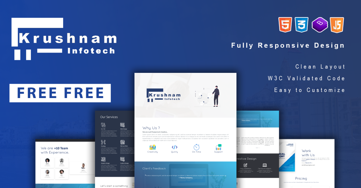 Krushnam – IT Business Design FREE HTML Template is designed for tech-savvy business owners and digital agencies who want to stand out online. Krushnam provides showcasing services, portfolios, and team profiles thanks to its responsive design, clear layout, and simple navigation. Whether you're starting a business or updating your IT consulting website, this template combines style and functionality with no expense or hassle, just unrestricted creative freedom. It is designed to load quickly, work on a variety of devices, and make an impression on users right away.