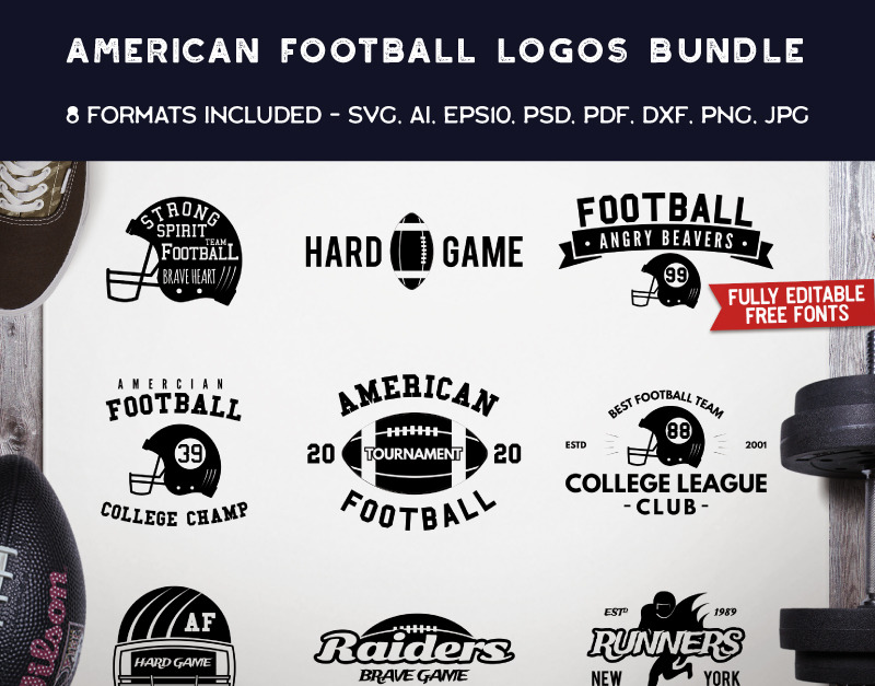 - 9 American Football logos designs;