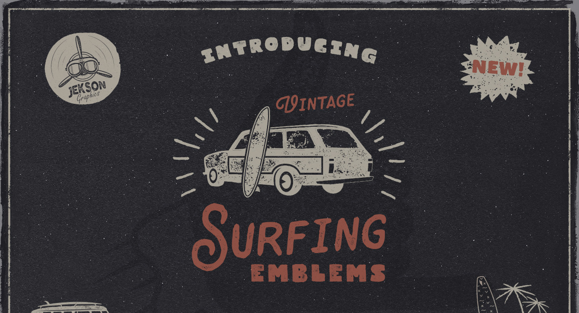 This set included Pre-made Surfing and Summer Activity badges, logo designs and elements, seamless patterns for your own creativity.