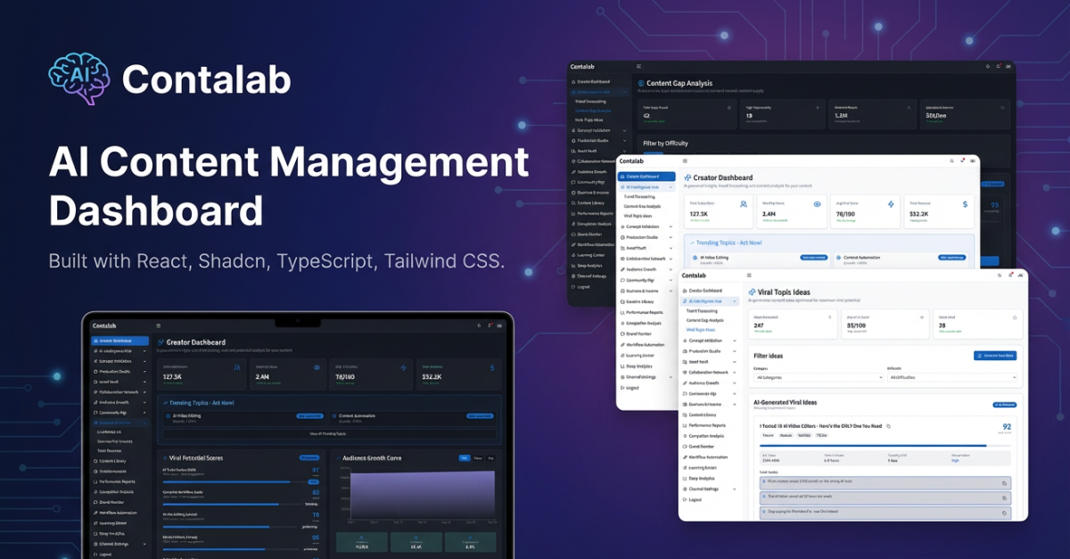 Contalab – AI-gestuurd dashboard voor content creators (React.js + TypeScript + Tailwind CSS + shadcn/ui)