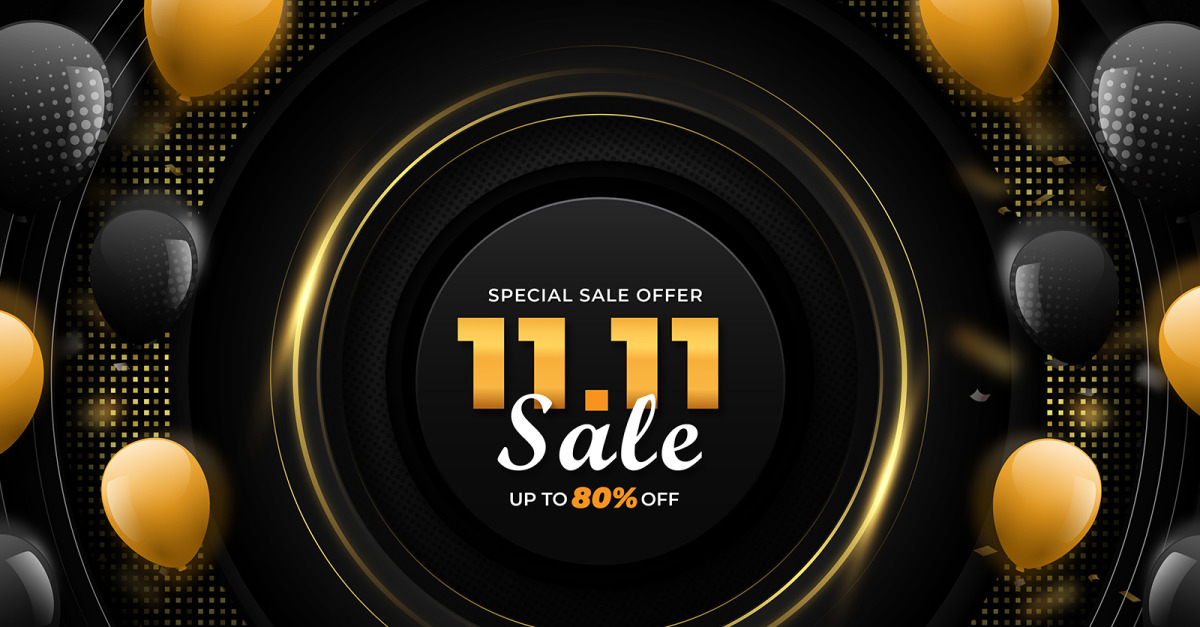 Superrealistische verkoopkorting donkere achtergrond met glanzende mooie ballonnen en vliegend ontwerp € 4 Download