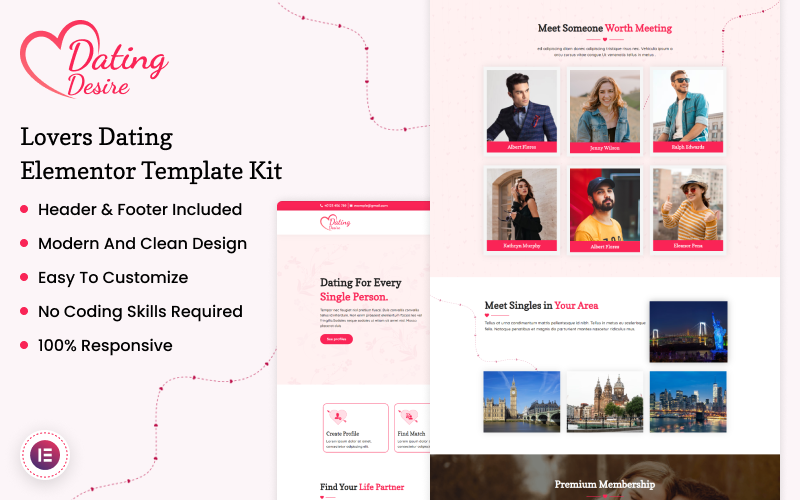 Dating Desire - Lovers Dating Elementor-sjabloonkit