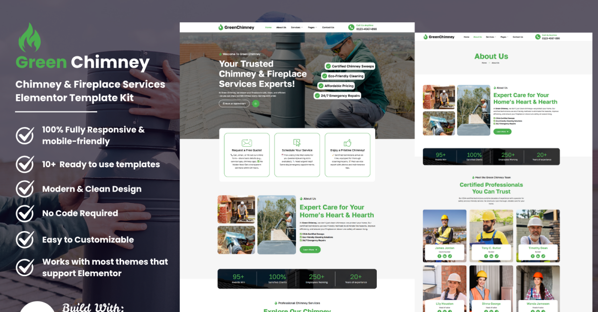 GreenChimney – Schoorsteen- en openhaarddiensten Elementor-sjabloonkit