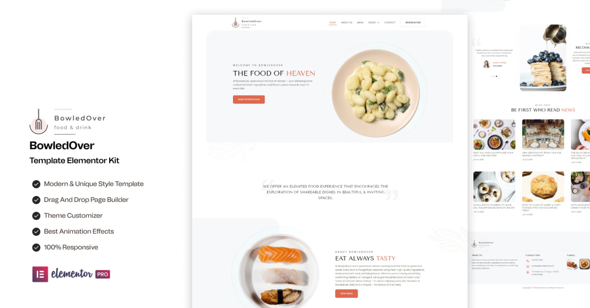 BowledOver – Multi-pagina WordPress Elementor-sjabloonkit voor horeca