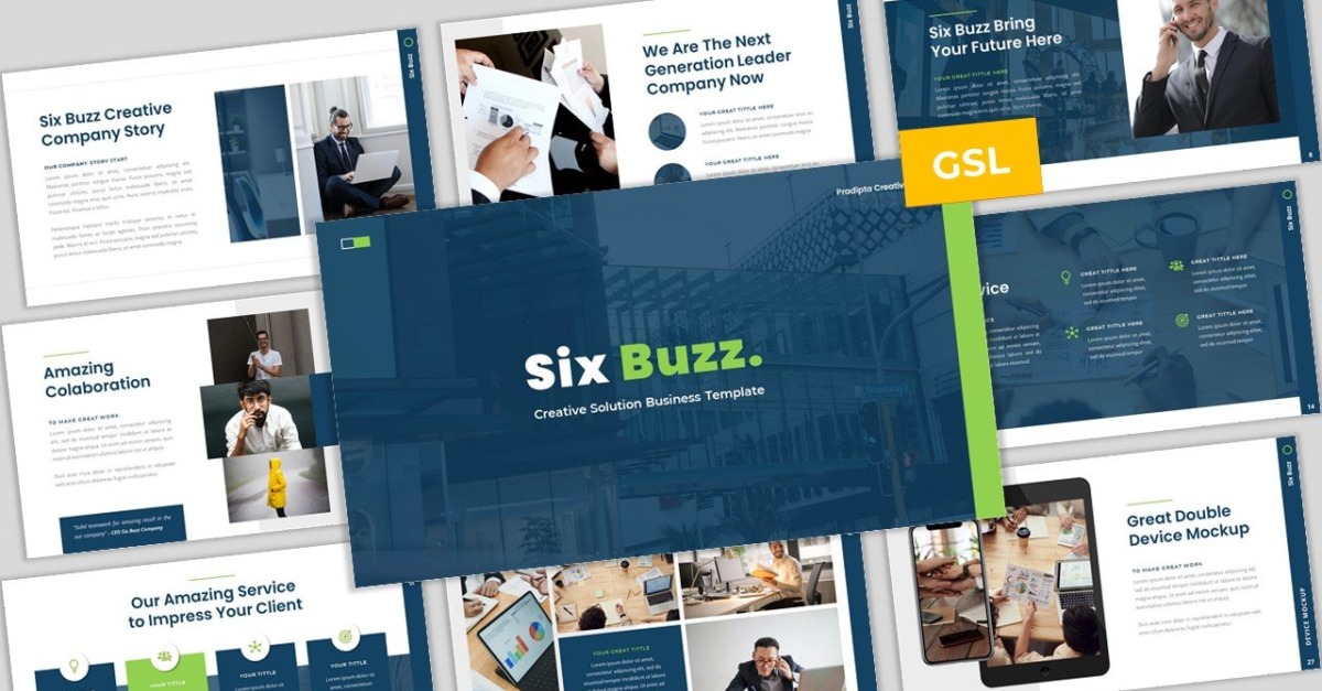 Introductie van Six Buzz - Creative Business Google Slides-sjabloon