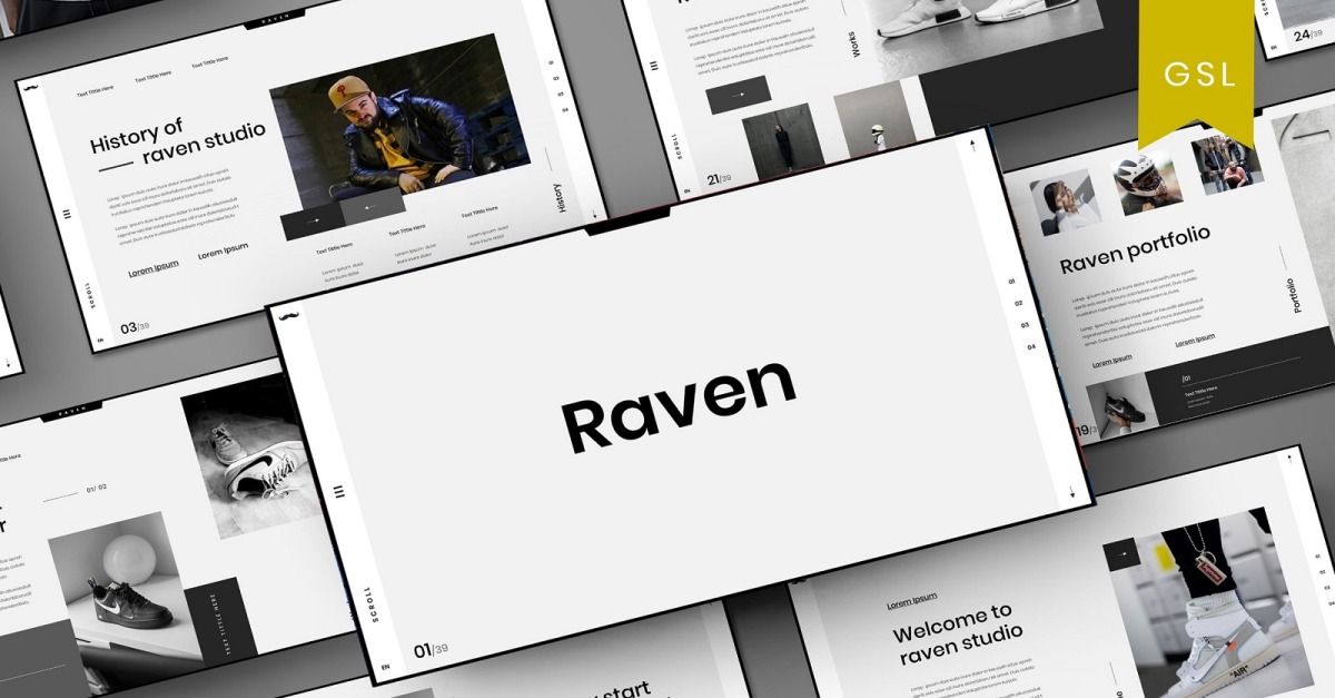Introductie van **Raven - Sjabloon voor zakelijke Google-dia's**