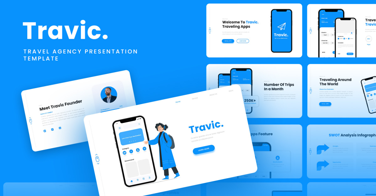 Travic - Google Slides-sjabloon voor mobiele apps voor reisbureaus