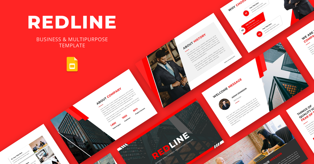 REDLINE - Google-diasjabloon voor bedrijven en meerdere doelgroepen