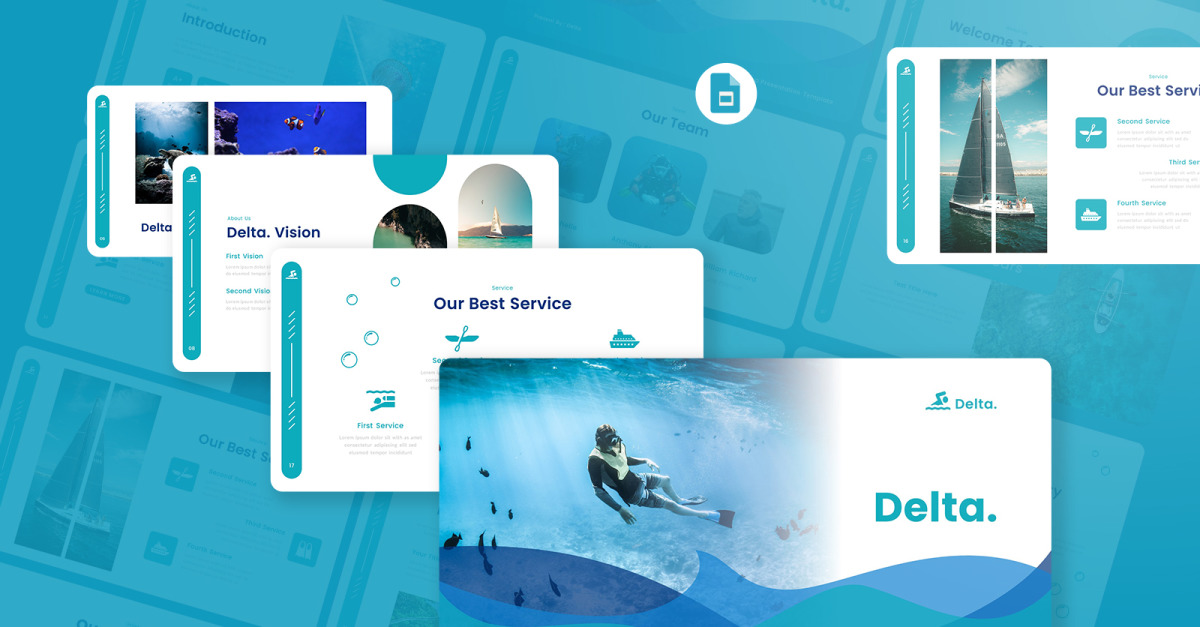 Delta - Google Slides-sjabloon voor presentatie van oceaan en zee