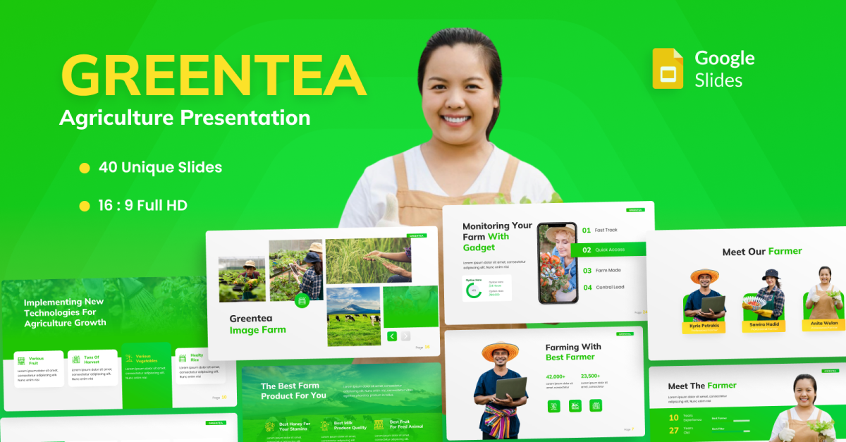 Greentea Agriculture Farm Google Slides-sjabloon