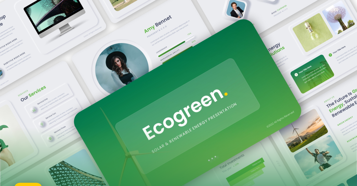 Ecogreen - Neumorphism Hernieuwbare energie Google Slides-sjabloon