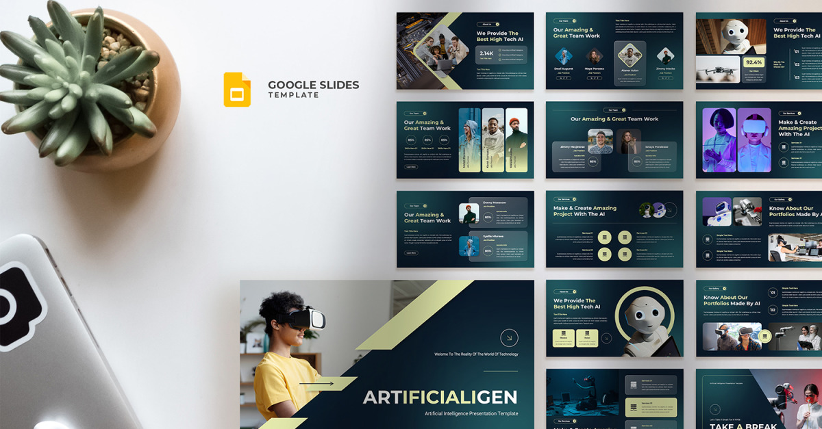 Artificialigen - Kunstmatige intelligentie Google Slides-sjabloon