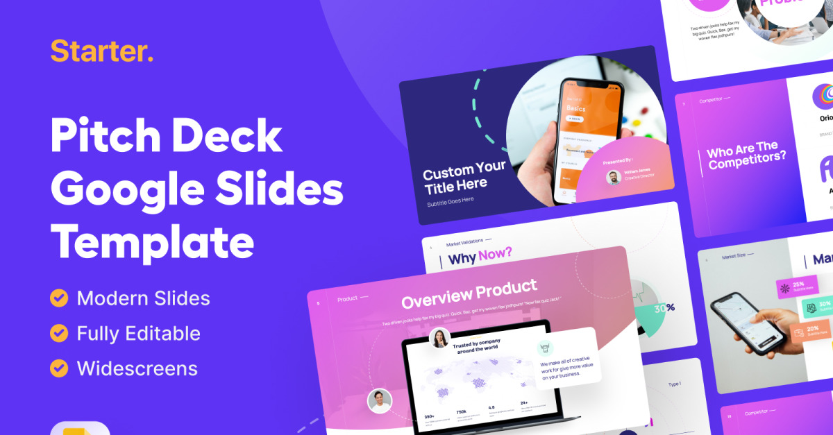 Starter - Pitch Deck-presentatiesjabloon is een moderne, overzichtelijke en gebruiksklare presentatiesjabloon voor een bedrijfsportfolio voor elke startup, professional, academicus of zakenman die zijn uitstekende project of creatieve ideeën wil promoten. Deze presentatie biedt dia's met inhoud die zowel modern als eenvoudig is. Het is niet nodig om aanvullende software te gebruiken; alleen PowerPoint is nodig en het kan worden geëxporteerd naar Google Presentaties. Het is volledig aanpasbaar, waarbij de grootte van alle vormen kan worden aangepast zonder dat de kwaliteit afneemt, evenals verwijderbare en bewerkbare elementen.