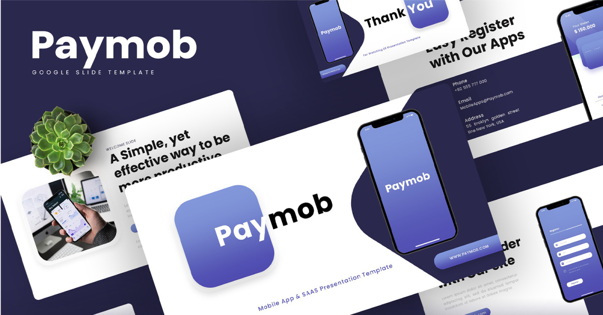Paymob - Mobiele app en SAAS Google Slides-sjabloon
