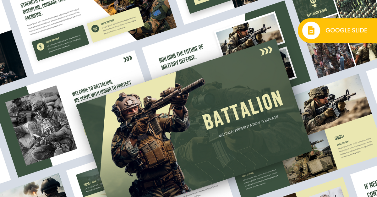 Maak kennis met **Battalion - Militair Google-diasjabloon**
