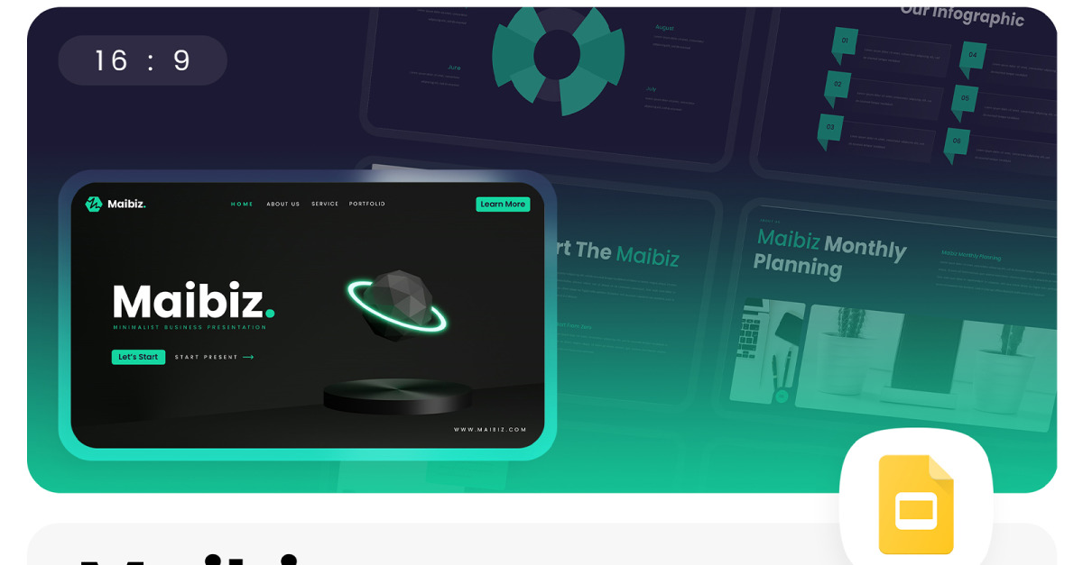 Maibiz – Minimalistische zakelijke Google Slides-sjabloon