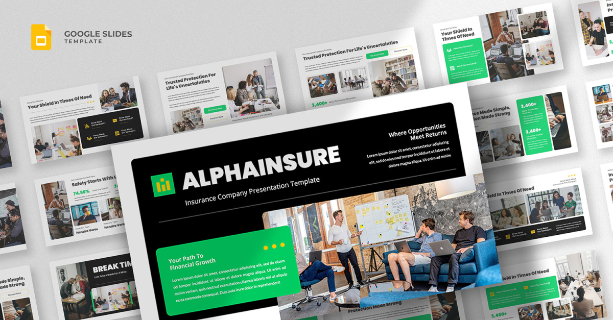 Alphainsure - Verzekeringen en investeringen Google Slides-sjabloon