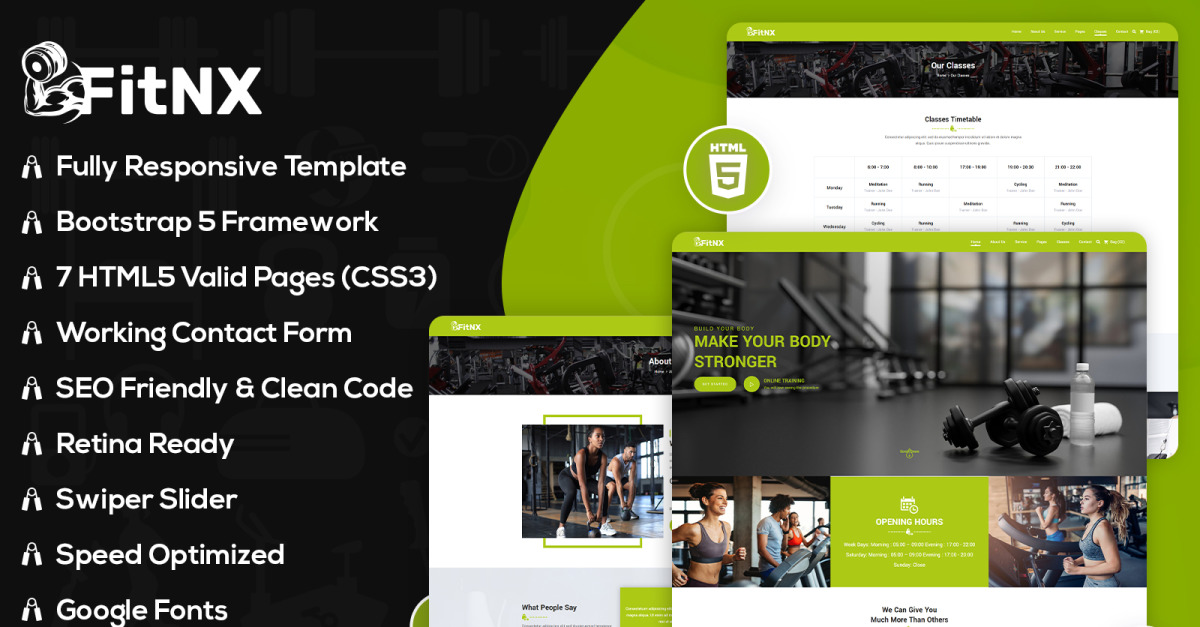 FitNX-gym en fitness HTML5 website template is een aantrekkelijke, futuristische, aanpasbare, uniek op maat gemaakte doordachte HTML lay-out voor wellness liefhebbers, fitnesscentra, hardlopen, fitness coaches, fitnesscentra opgeleide professionals en welzijnscentra. Het heeft een schema voor al uw toegankelijke lessen en cursussen in fitnesscentra, welzijnscentra en wellnessclubs, evenals reflectie, welzijnsleraren en verschillende experts, die allemaal zijn opgenomen met het formaat en contactgegevens, waardoor het voor uw klanten eenvoudig is om ze te vinden. U kunt de secties in principe opeenvolgend sorteren of op laatst toegevoegd.