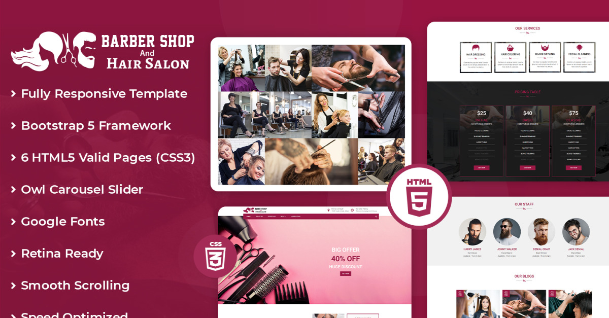 Onze experts die verschillende andere kapsalonwebsites bestudeerden, brachten de beste eigenschappen naar voren in Barbershop en kapsalon-Html-template, aangezien het niet alleen een mooie website is, maar ook een converteerbare website. Het is eenvoudig te installeren zonder kennis van coderen, heeft een strak en helder ontwerp en is responsief en compatibel met elke browser.