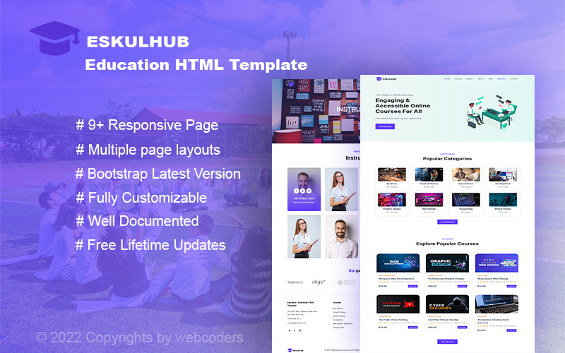 Eskulhub is een van onze beste producten. Deze sjabloon is gebouwd op HTML5, CSS3 Bootstrap 5x, JavaScript, jQuery. We hebben het nieuwste bootstrap-rastersysteem in deze sjabloon gebruikt. Deze sjabloon bevat een startpagina met meer dan 9 prachtige html-pagina's. Het is een volledig bewerkbare sjabloon. Alle pagina's zijn volledig compatibel met mobiel of elk ander apparaat. Deze sjabloon zal uw bedrijf dus zeker een boost geven! gratis maatwerk